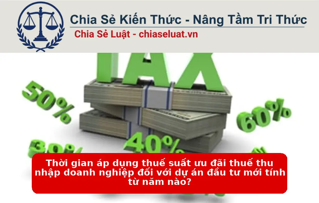 Thời gian áp dụng thuế suất ưu đãi thuế thu nhập doanh nghiệp đối với dự án đầu tư mới tính từ năm nào?